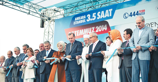 土總理埃爾多安(前右六)和政府官員為高鐵開通剪綵。