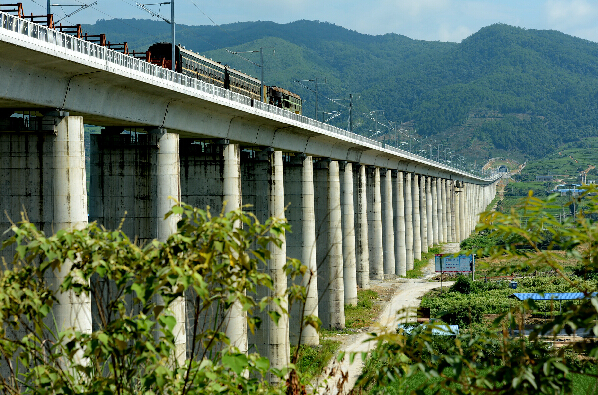 这是合福高铁福建武夷山南岸村长达2194.13米的特大桥