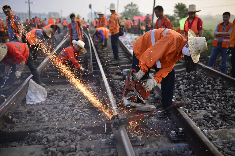 7月29日,皖赣铁路甘棠站最后一组木枕道岔更换为水泥枕木,标志着江西省境内所有干线铁路告别“木枕时代”。据介绍,更换水泥枕木后,铁路原有的有缝钢轨全部升级为无缝钢轨,途经皖赣铁路的列车运行时速将由过去的60公里提升为120公里,载重、稳定性将大幅提升。