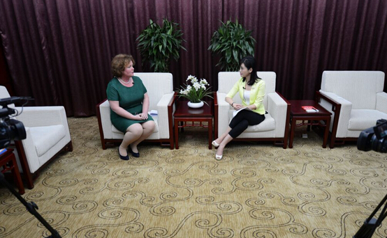 中国澳大利亚商会主席Tracy Colgan接受大公网主持人周楠专访。 姚勇 摄