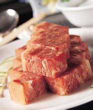一說吃肘子,人們腦海里閃現的多半是《水滸》式的英雄好漢攥著大肘棒,端著老白乾兒,大碗喝酒,大塊吃肉,狂吃豪飲,好不痛快!的確,肥碩瓷實的肘子通常是餐桌上那道最硬的擋口菜,無論山東的鍋燒肘子、四川的豆瓣肘子,還是江南的東坡肘子、陝西的帶把肘子無不如此。然而事有例外,鎮江有道用肘子做的冷葷小菜,看上去晶瑩靚麗,吃起來有股別樣的爽利,堪稱厚味中的玲瓏神品,這就是號稱「鎮江一大怪」的餚肉。