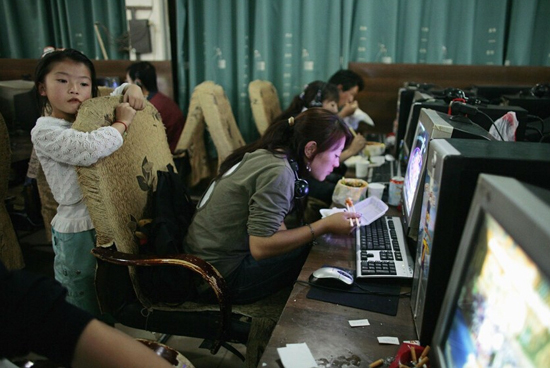 真正导致网吧没落的,是个人电脑的普及,和智能手机、平板电脑等移动设备的冲击。图为2006年,西藏拉萨一网吧内。