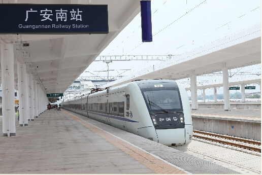 一列动车从广安南站出发前往成都