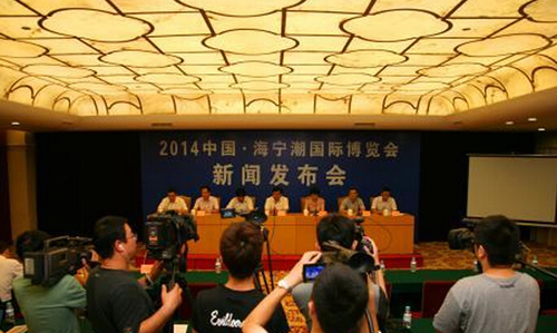 “2014中国·海宁潮国际博览会”新闻发布会在杭州召开。李晨韵 摄