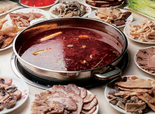 武隆因獨特的地貌養育出帶有鮮嫩肉質的羊肉,做出的紅湯羊肉火鍋很有名。重慶人偏愛黑山羊,切成片狀的羊肉、羊肚、羊肝等在油鍋中翻滾,在等待的過程中,店員把一大勺神秘湯料放入鍋中,讓味道更上一層樓。其實,神秘的湯料是遷就重慶人對辣的偏好,其由辣椒、花椒、胡豆瓣、山椒等調料加入羊肉湯而制成的。火鍋蕩漾著紅油浪花,夾帶鍋中的羊肉、羊雜碎片翻滾,誘人的香氣彌散開來。同時,配上鸡樅菌、竹筍乾、高山紅苕粉絲等武隆的當地美食,唯美之情,不亦樂乎。