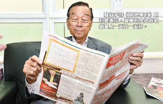 發叔手持《新界專刊》創刊號表示,冀專刊在內容和銷量上一天比一天好。