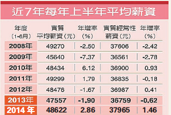不过,若扣除同期物价涨幅,1至6月实质平均薪资剩下4.8622万元,较去年同期增加2.86%,但仍不及1998年的4.8774万元,减少0.31%。