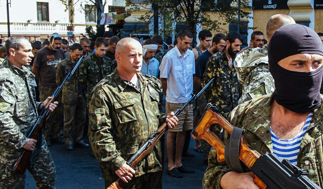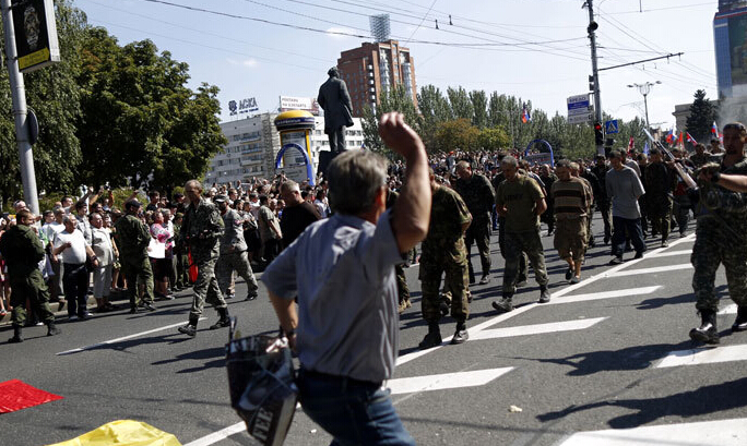 8月24日,乌克兰首都基辅举行盛大的独立日阅兵活动,庆祝本国从前苏联独立23周年。然而同一时刻,乌克兰东部武装也在顿涅斯克市举行大阅兵,并且进行了俘虏大游街,上百名乌克兰政府军的俘虏在市中心进行了游街,据称有数千名居民向俘虏喝倒彩。