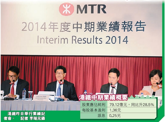 半年纯利增近29% 港铁承担两线超支30亿
