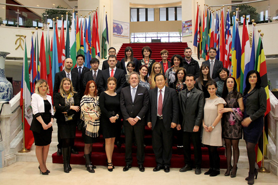 黑山援助项目管理人员研修班学员和老师等在结业典礼上合影