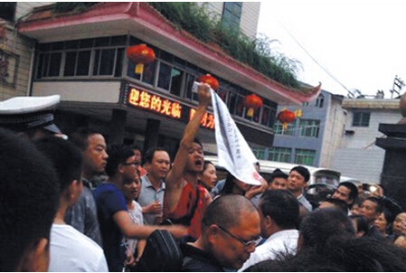 26日晚,湖南龙山县委宣传部通报了皇仓中学师生和教官发生肢体冲突的经过并公布处理结果。这份公告引发学生不满。27日下午,龙山县高一学生和家长上街聚集,走到县政府经常开会的民族宾馆外。