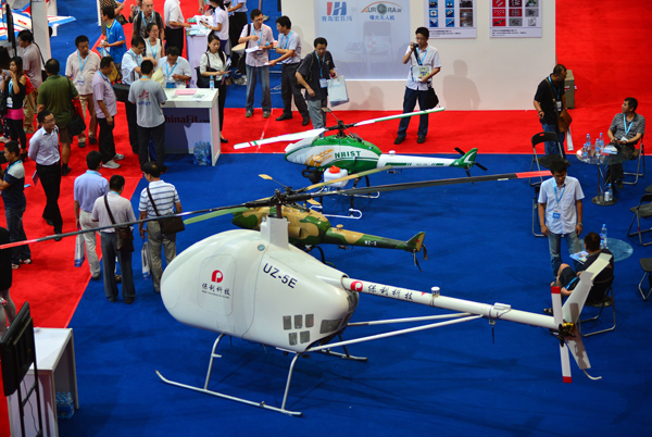 当日,2014(天津)国际无人机与航模技术装备展暨无人机发展与应用高峰论坛在天津市体育中心拉开帷幕。在本次为期3天的展览中,来自国内外70余家无人机研发和制造企业,携旗下数百种尖端无人机展品亮相,其中包括百余架无人机整机,以及无人机气动、控制导航、通信技术等多类产品。除了设备展示,参观者还可以观看到无人机空中飞行表演,参与无人机飞行模拟操控,并且能够聆听航空专家现场科普辅导,了解无人机知识。