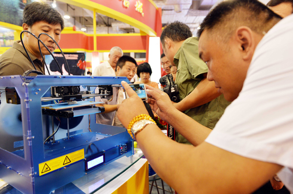 8月28日,新奇的3D打印机吸引了大批参观者。