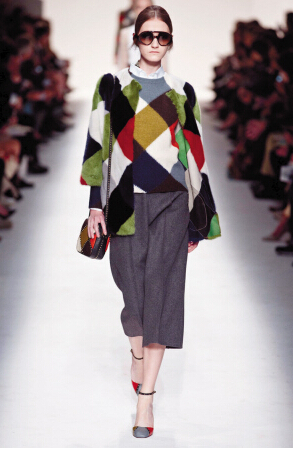整张皮草的雍容贵妇感也容易造成过熟的印象,让人轻易不敢尝试,这一季,设计师们充分发挥面料再造的功力,在Just Cavalli、Alexander McQueen、 Fendi、Versace、Balmain和Marc Jacobs的设计中切割、拼接,将皮草演绎出时尚设计感,也让皮草变得更年轻更亲民。色彩的愉悦、材质的轻盈,再一次更新了秋冬皮草大衣的模式。