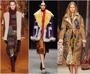 粗犷但不凌厉的剪羊毛再度出山,成为2014秋冬耀眼的时装单品。羊毛质感的出现其实代表的是可爱的、温柔的风格,从Burberry和Prada秀场上的造型就可以看出一二。Etro、Prada、Burberry Prorsum也是这种略偏中性风格的代表,而在Valentino秀场上剪羊毛与花朵图案结合,强化一种毛茸茸的温暖和温柔优雅。秋冬秀场中同时不可忽视的就是透视印花,看看时装周的后台照片,就不难发现,透视印花连衣裙简直就是为搭配皮草而生。厚重与轻盈相互拥抱,温度与风度一样都不会少。你能抗拒吗?