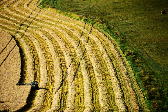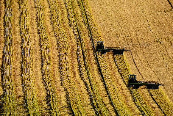 9月2日,在内蒙古额尔古纳市广袤田野里,割晒机正在割晒小麦。