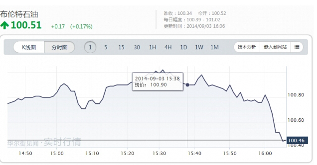 布伦特原油下跌: