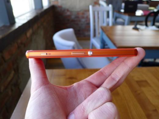 Xperia Z3的外形设计并没有质的改变。采用了铝合金边框、正反面玻璃设计,标志性的圆形电源按键也依然出现在机身右侧。当然,Xperia Z3需要一些变化,比如虽然同样搭载5.2英寸屏幕,但窄边框设计让机身更轻便,另外侧面的插槽挡板都改为尼龙材质,拥有更好的防水性。