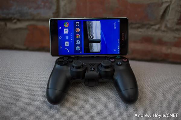 Xperia Z3的一个新功能是可以作为PS4游戏主机的远程第二屏使用,可以通过WIFI实现基于流媒体技术的游戏操作,也就是说你可以用Xperia Z3玩PS4游戏。当然,画质会因为流媒体形式稍微缩水一些,但一个很酷的功能是可以支持PS4手柄,只要购买一款专用支架,就可以将Xperia Z3架在手柄上游戏。