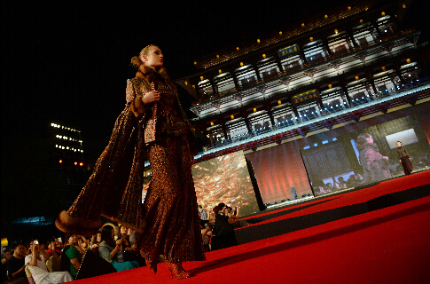 9月4日晚,一场顶级意大利品牌时装秀在西安大唐芙蓉园紫云楼南广场上演,来自国内外的众多模特身着时尚服装进行演绎,给古城观众带来一场视觉盛宴。