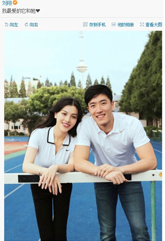 凤凰体育讯 北京时间9月9日刘翔在微博上发布女友的合影。在微博里,他发布了和女友趴在跨栏上的照片,并且附注说:“我最爱的它和她。”刘翔第一次公开了自己与女友的亲密照。