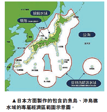 《公约》中有规定指出,如有依据证明大陆向海洋的自然延伸,即使是EEZ以外的相应范围也属沿海国的大陆架。日本政府在9日召开的内阁会议上,以政令的形式决定将冲大东岛以南约17.4万平方公里及冲鸟礁以北约3千平方公里的海域划为其新的大陆架。