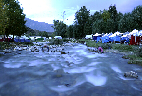 藏族群众在拉萨郊区山谷里搭起帐篷开始沐浴