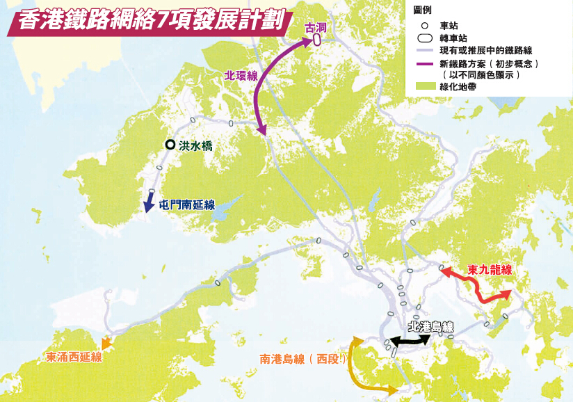 北環線及古洞站亦是備受關注的項目。該線將連接現有西鐵線的錦上路站和在落馬洲支線量的古洞站,長約10.7公里,提供穿梭錦上路及古洞兩個總站之間的服務。該線會連接東鐵線及西鐵線,在新界北部形成一個環狀網絡,讓新界居民有更多選擇。報告亦稱該線是應付新界東北發展計劃、新界西北人口增長等情況,初步建議落實時間為2018年至2023年。