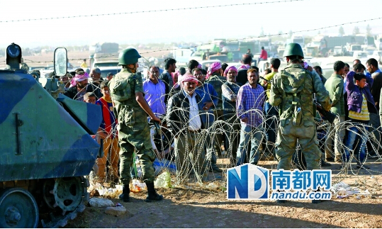 对于逃到叙土边境的叙利亚难民,土耳其当局起初拒绝入境,但在19日决定开放一段边境,允许他们进入土耳其。这些难民大多是在叙利亚北部的库尔德人。受叙利亚国内冲突影响,土耳其境内当前已有约130万叙利亚难民,土耳其政府为此每年要花费30多亿美元。