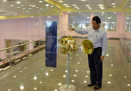 印度太空官员在对“曼加里安”的模型进行讲解。新华社/中国特稿社