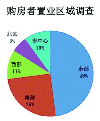 记者统计调查发现,48%的购房者的意向区域为东部。但是展会现场中海华山珑城和北大时代作为北部新盘代表人气旺盛,带动整个北部片区的热度。