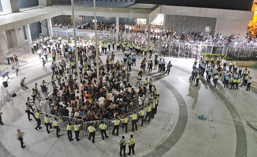 昨日凌晨,港府發布聲明,對於有集會人士強行進入政府總部東翼前地,並造成多名保安人員及其他人士受傷表示遺憾。發言人指,為配合前日集會,當局已開放政府總部外的行人路和添美道給集會人士使用。然而,集會人士在當天晚上突然衝破保安閘門,並經圍欄爬入政府總部東翼前地。