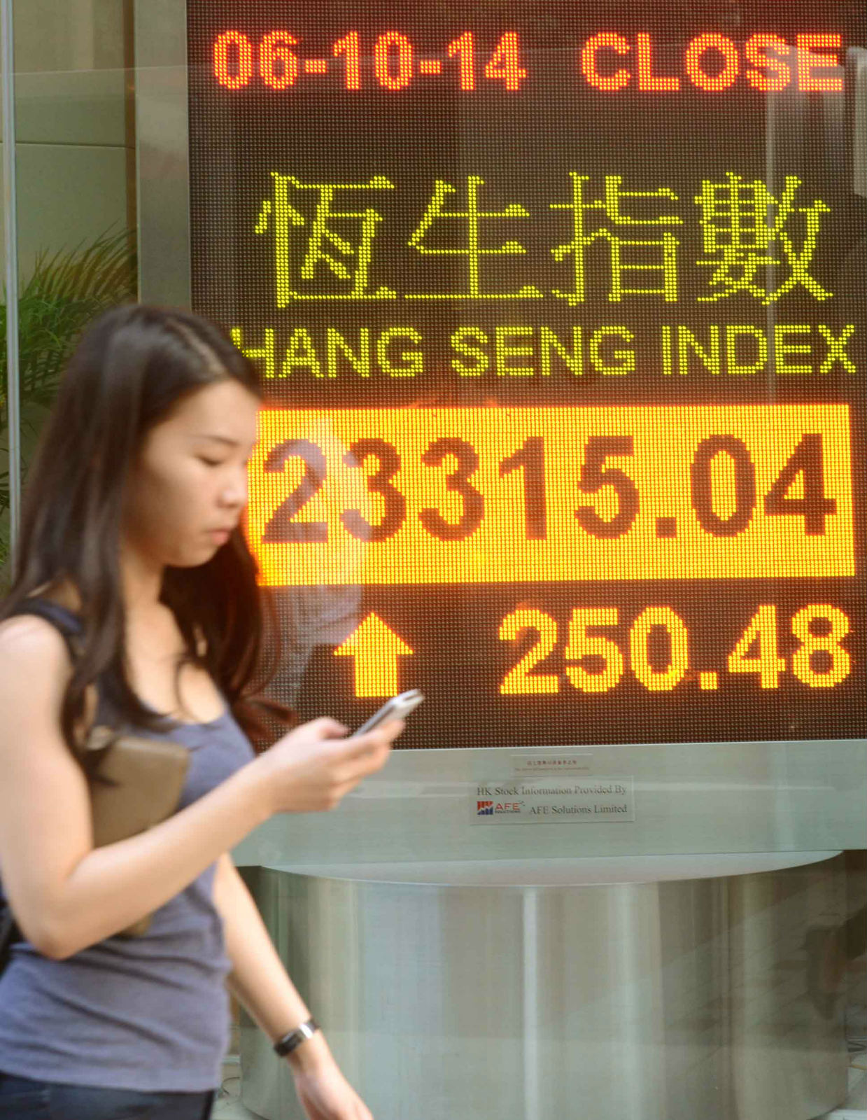 【香港商報訊】記者陳薇報道:占中行動有緩和迹象,加上港匯轉強,而市場又憧憬「滬港通」快將啟動,港股連續第二日反彈。恒指昨日升250點或1.1%,收報23315點,收復牛熊線(約為23172點),惟彈市成交縮至725.7億元,較上日減兩成四。國指跑輸恒指,全日收報10409點,升61點或0.6%。恒指連升兩日累漲382點或1.7%。分析預料,大市短期會上23600點。