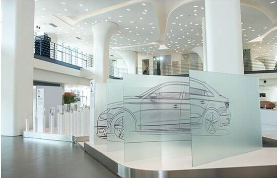 由玻璃墙和手绘图组成的展品展示了草图绘制阶段。在这一阶段,车身到内饰的每一个细节都会首先被手绘出来。展品充分诠释了奥迪的风格——超时代的美丽,精致入微的优雅形式,简化线条的艺术。
