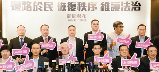 大联盟要求示威者立即撤离马路,还路於民;停止违法行动,恢复社会秩序;政府应维护法纪,坚定执法,同时向示威者提出5项紧急呼吁,包括要求「占中三子」、「学联」及「学民思潮」停止继续呼吁市民上街,更不应继续发放「战死沙场」、「永不撤退」等煽动信息,断绝学生群众撤离的后路,认为发起人应拿出勇气,承认立场前后矛盾,进退失据,并承担「占中」场面失控令全港市民受累的法律责任。