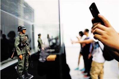 参观者拍摄动漫人物公仔 海南日报记者 宋国强 摄