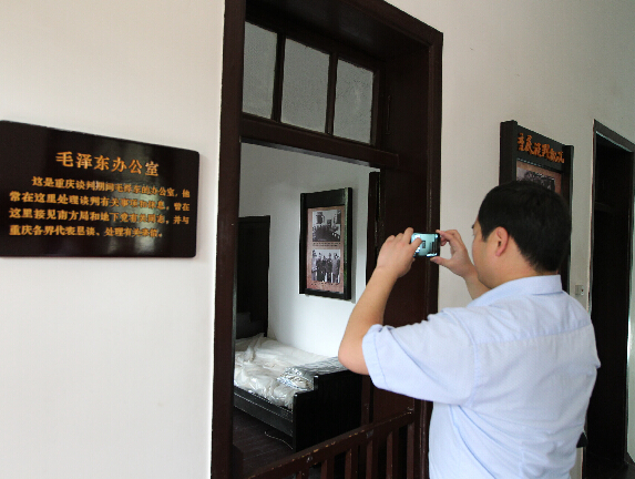 老旧的床、沙发、桌椅、电话机等陈设,带着人们穿越回69年前。来自河南郑州的游客李瑞钢和4个同伴,分别在小楼内每个房间拍照留念。李瑞钢告诉中新社记者,在内战一触即发之时,毛泽东等中共代表敢於“入虎穴”与国民党谈判,其勇气令他敬佩。