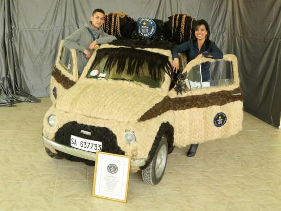 据美国Odditycentral网站10月8日报道,世界之大,无奇不有。为向自己的职业致敬,意大利44岁的女发型师玛利亚·露西亚·马格诺(Maria Lucia Mugno)将自己的爱车全身“缝”上了人类的头发,为爱车赢得了 “世界上头发最多的车”的吉尼斯世界纪录称号。