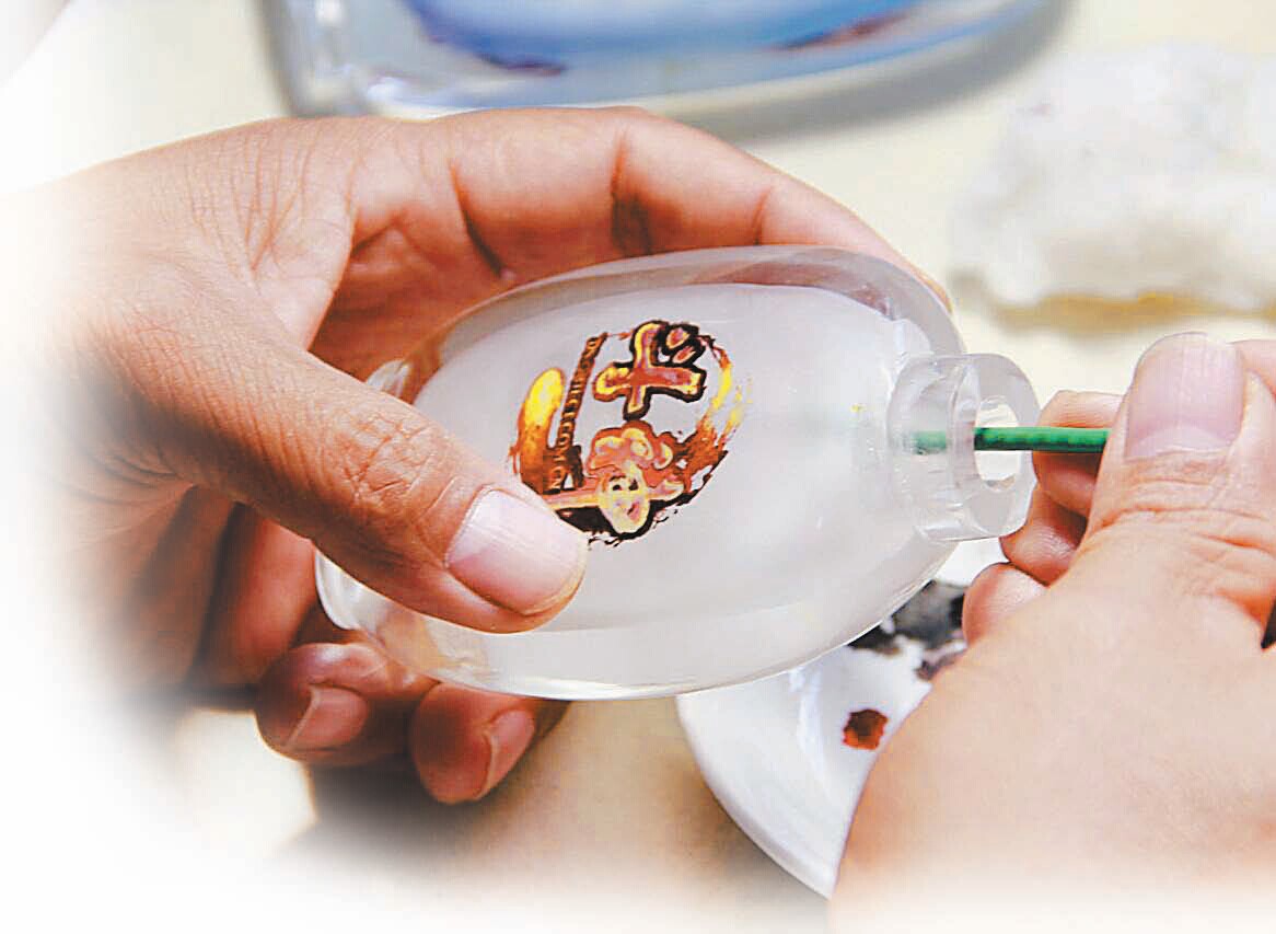 內畫是中國特有的一種傳統工藝,它的產生起源於畫鼻烟壺。內畫鼻烟壺曾經因為它的制作精良、內容雅致成為清朝皇宮貴族們的掌上珍玩。它以細小的勾筆伸入壺內,反向繪畫和寫字,使人由外觀之,其精絕書法、佳妙繪畫,被人疑為「鬼斧神工」。冀派內畫第四代傳人頡俊峰告訴記者,內畫細微之處需用四五倍以上的放大鏡觀看,它已被列入國家級非物質文化遺產名錄。中國的繪畫技法在方寸之間,隨心所欲,以小見大。香港商報記者黃鶯