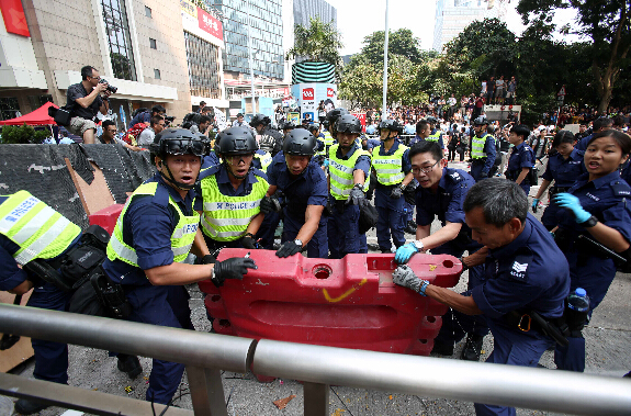 在“占中”示威持续两周后,香港警方连续第二日清除示威者设置的路障。目前示威活动陷入僵局,加深了示威者的挫败感,公众的支持也不断降低。
