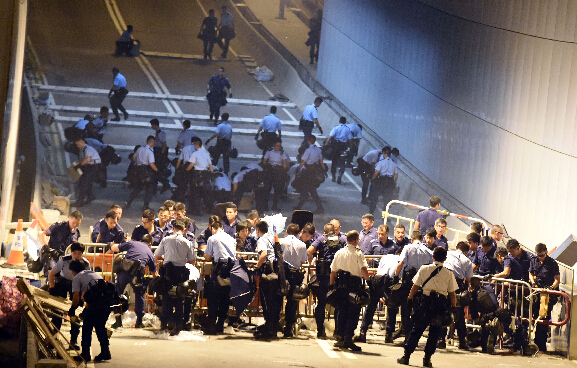 原标题:香港警方凌晨驱散特首办外示威者 拘捕45人(图)