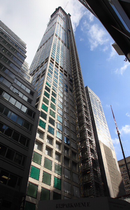 纽约诞生西半球最高住宅楼 单套公寓起价700万美元。 14日,纽约一座高达1396英尺(约425米)的摩天大楼封顶,这座纽约新地标性建筑不仅是纽约最高住宅建筑,这也是迄今为止西半球最高的住宅楼,该楼共96层,其住客可将纽约中央公园、哈德逊、东河及纽约五大行政区的美景尽收眼底。该摩天大楼预计2015年完工,有104套公寓可供出售,单套公寓起价700万美元,当前已经销售过半,其中售价高达9500万美元最贵顶层豪宅也已售出。