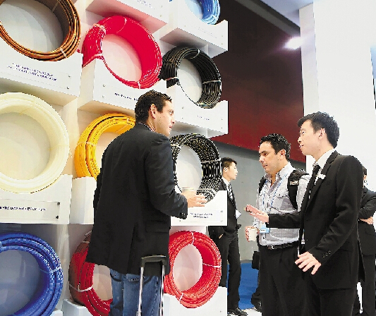 正泰电气股份有限公司今年有两个展区,输配电及工程设备位于“大型机械设备”区。高级销售代表陈赛赛告诉记者,开幕第一天来该展区的人员并不算多,不过,今年1至9月,她所在的拉美业务部已经完成了全年的目标任务:1.8亿元。“这次广交会,主要想再冲刺一把,希望能找到一些直接分销的客户。”