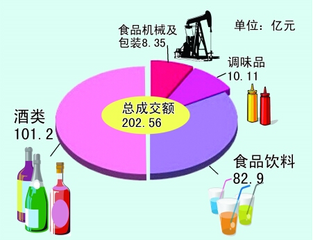 据糖酒会组委会昨日发布的消息,本届糖酒会总成交额达到202.56亿元,其中,酒类成交总额为101.2亿元,食品饮料成交总额为82.9亿元,调味品成交总额为10.11亿元,食品机械及包装成交总额为8.35亿元。总成交额超过上一届在武汉举办的秋季糖酒会194.57亿元,接近今年三月春季糖酒会的208.26亿元的成绩单。