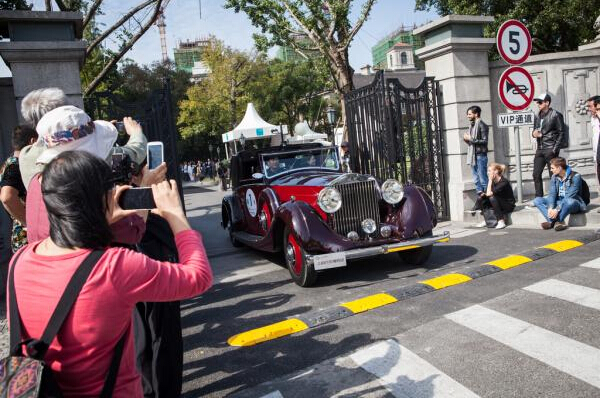 10月18日中午,10多辆老爷车队往返于北京东路和延安东路路段,沿上海外滩中山东一路举行盛大的老爷车巡游。在被誉为“万国建筑博览群”的外滩,人们一睹为快来自于英国、德国、澳大利亚及国内成都、北京和上海的不同年代及种类的老爷车的无敌魅力,领略真正的老爷车风范。此次亮相的老爷车可谓“身世显赫”,均来自于在外滩源壹号室外的草坪上举行的Bund Classic “尊驰盛汇”2014上海老爷车博览会中展出的展品。