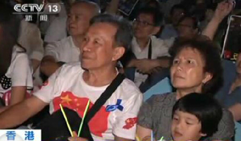 视频截图:实拍千名港民集会反占中 高歌支持警察 来源:中央电视台