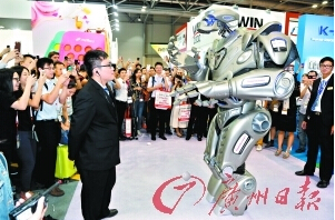 来自英国的著名表演机器人Titan也在此次展会上出现,这是他首次在香港行走,这个身高2.4米、重达400斤、全身银色的“大家伙”行走起来霸气十足。环球资源行政总裁区乃光说,Titan是如今科技日新月异的一个缩影,移动产品的周期大大缩短,而展商只能不停追赶才能跟得上市场。