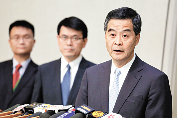 梁振英指出,香港是一個法治社會,政府要依法辦事,在政改問題上,要根據《基本法》及人大常委的若干決定,落實普選,社會亦普遍期望占領各街道的人士守法。法庭前晚頒布臨時禁制令,希望占領人士除了考慮社會利益,以大局為重外,亦要考慮自己在刑事、民事以至藐視法庭的種種責任。