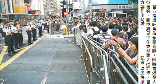 许镇德指出,旺角多日来被非法霸占道路的人士堵路,严重影响交通,留守人士当中夹杂着激进及滋事分子,经常号召及组织各式各样的冲击行为,挑衅警方,制造混乱,批评他们的行为完全违法及破坏公共秩序。虽然旺角近两日并无大型冲击事件发生,但形势仍然险峻,仍是一个高风险地区。旺角18日共94人被捕