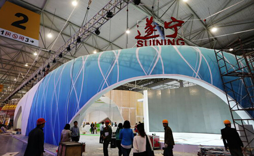 遂宁市委、市政府对参加第十五届西博会高度重视,向省博览局争取到世纪城新会展中心内最好的展位和广告位,西部合作馆2号馆入口处“遂宁——让心灵度假”的牌坊格外醒目,上面的3幅大型广告分别以“江淮汽车·遂宁基地”、“成渝支撑点·绿色新遂宁”、“中国西部现代物流港”为主题,馆内的遂宁展馆面积达1352平方米,整个西部合作馆刮起了“遂宁风”,全方位展示遂宁的优势产业、城市建设和文化旅游发展情况,以提升遂宁城市品牌影响力。昨(22)日遂宁展馆主体形象已呈现,正在进行最后的布展工作。(遂宁日报记者 何光华)